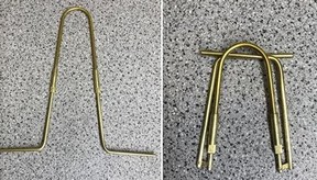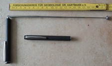 "Nürnberger Rute" Messinglänge 63 cm, aus Messingrohr, gelagert mit zwei Drehelementen, super leicht und gängig, jetzt wieder neue aufgelegt, vor mehr als 10 Jahren bereits bei Münchner Forschungsprojekt bestens bewährt. | |||